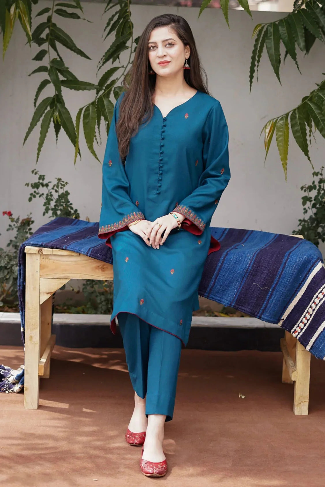 AISLING - 2PC DHANAK EMBROIDERED SHIRT AND TROUSER - HZG2394