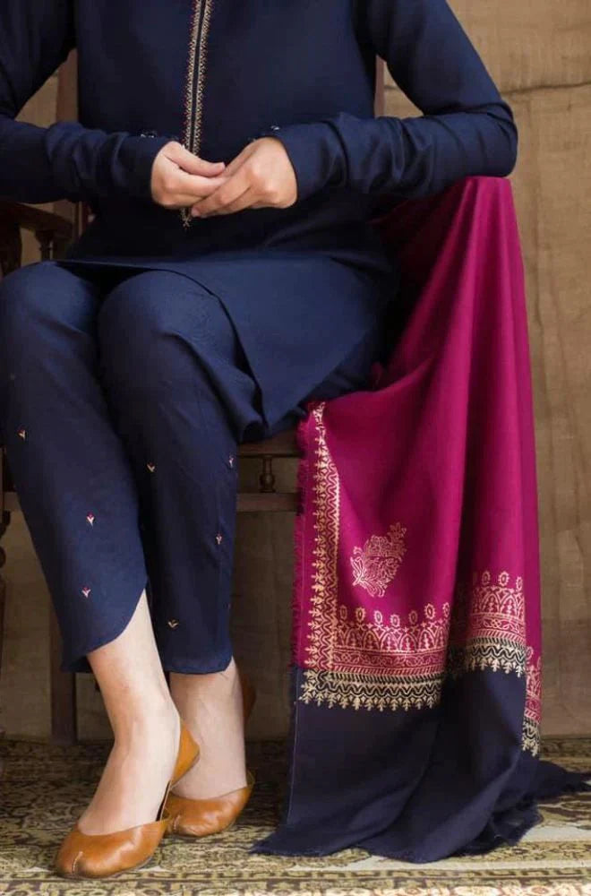 AISLING - 3PC DHANAK EMBROIDERED SHIRT WITH TWILL PRINTED SHAWL AND TROUSER - HZG1054