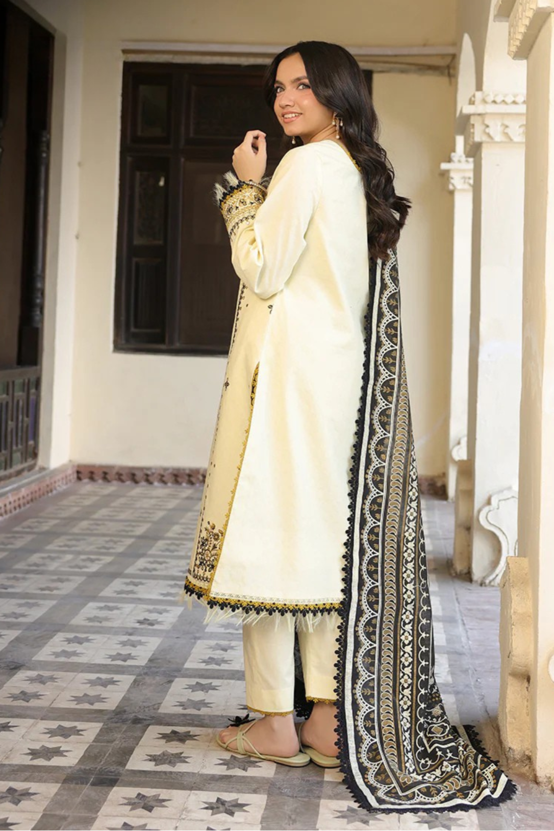 ASIM JOFA - 3PC LAWN EMBROIDERED SHIRT WITH MANAAR PRINTED DUPATTA AND TROUSER - HZG2308