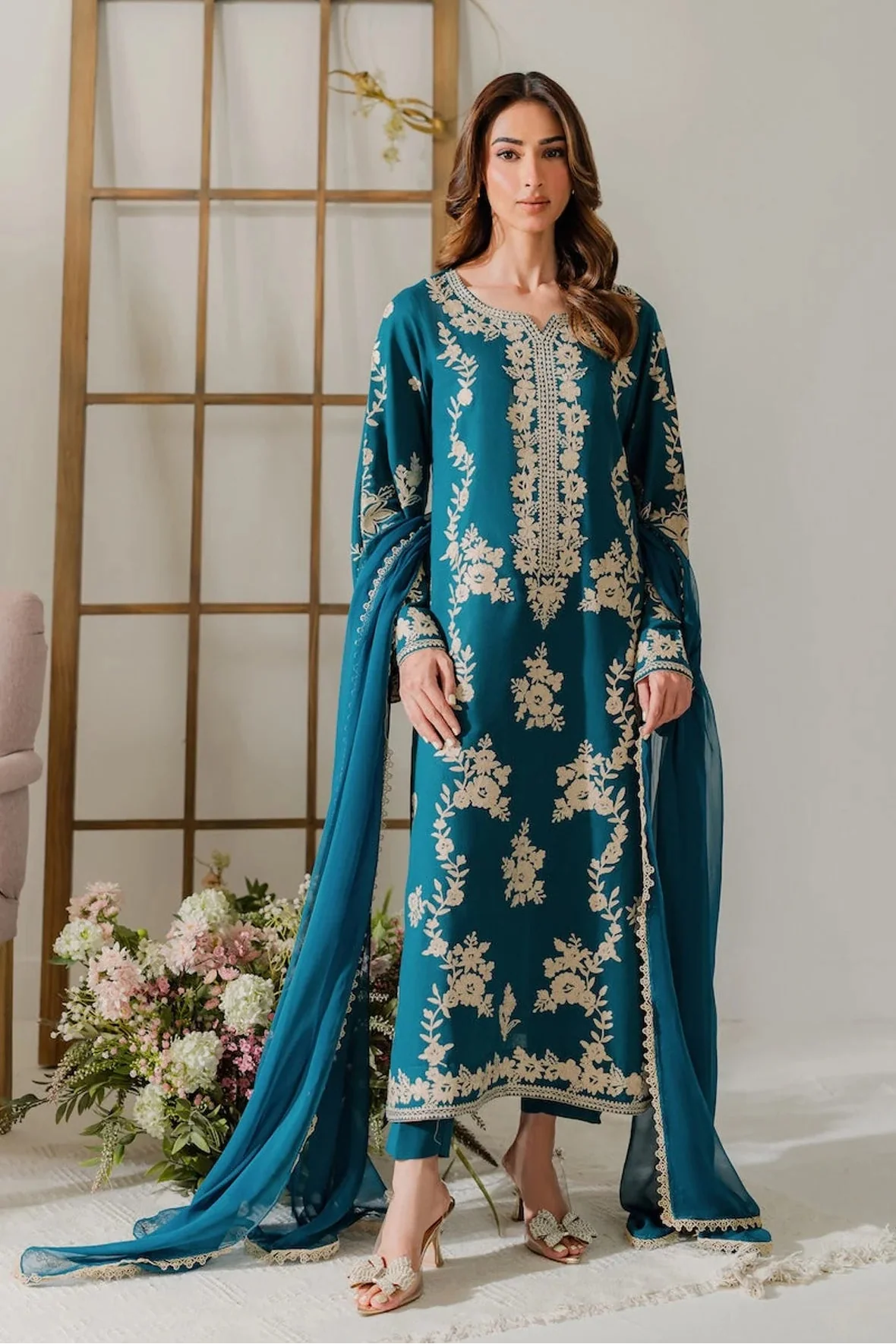 BATIK - 3PC DHANAK EMBROIDERED SHIRT WITH CHIFFON DUPATTA AND TROUSER - HZU2492