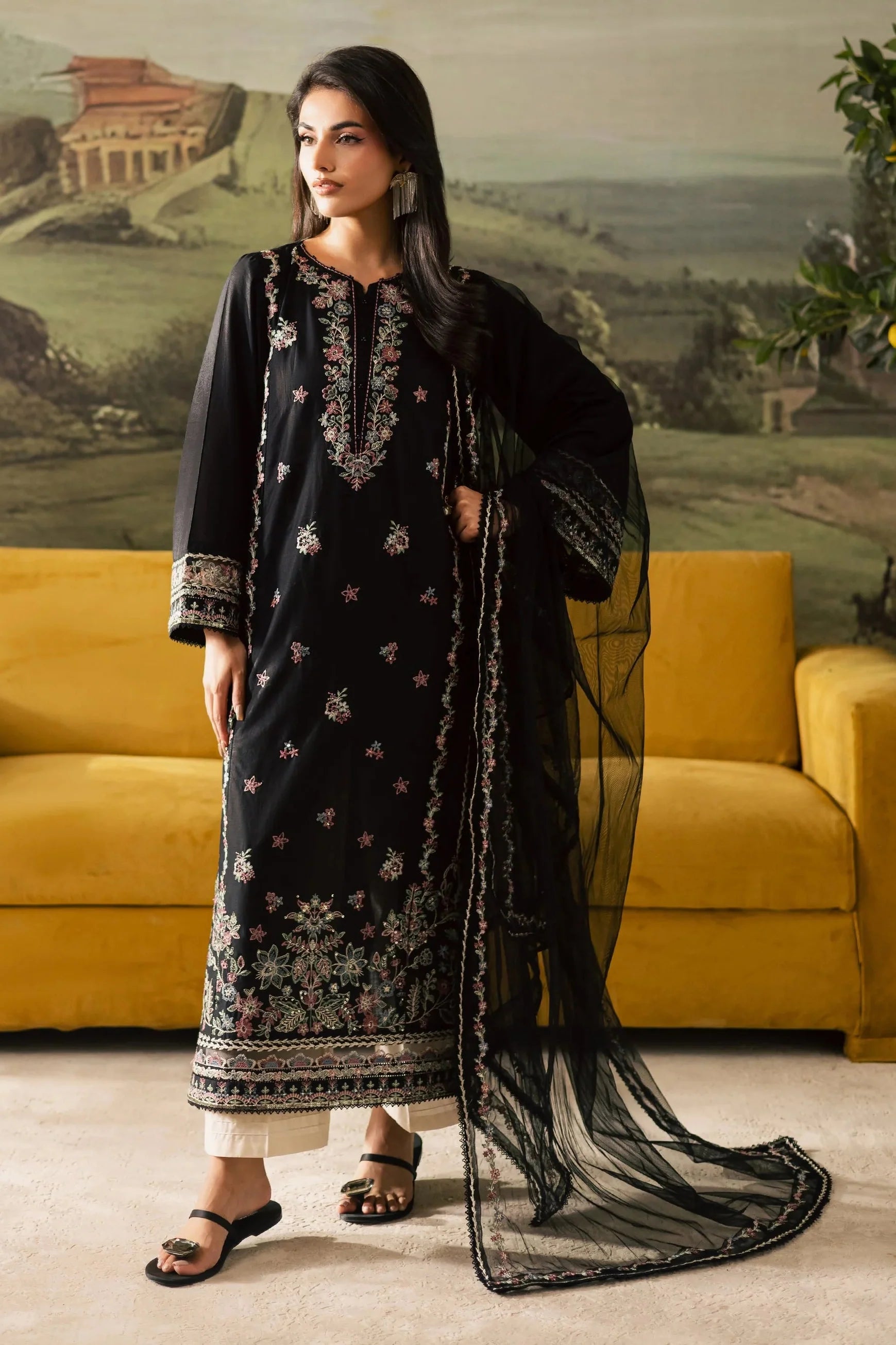 BATIK - 3PC DHANAK EMBROIDERED SHIRT WITH CHIFFON EMBROIDERED DUPATTA AND TROUSER - HZU2494