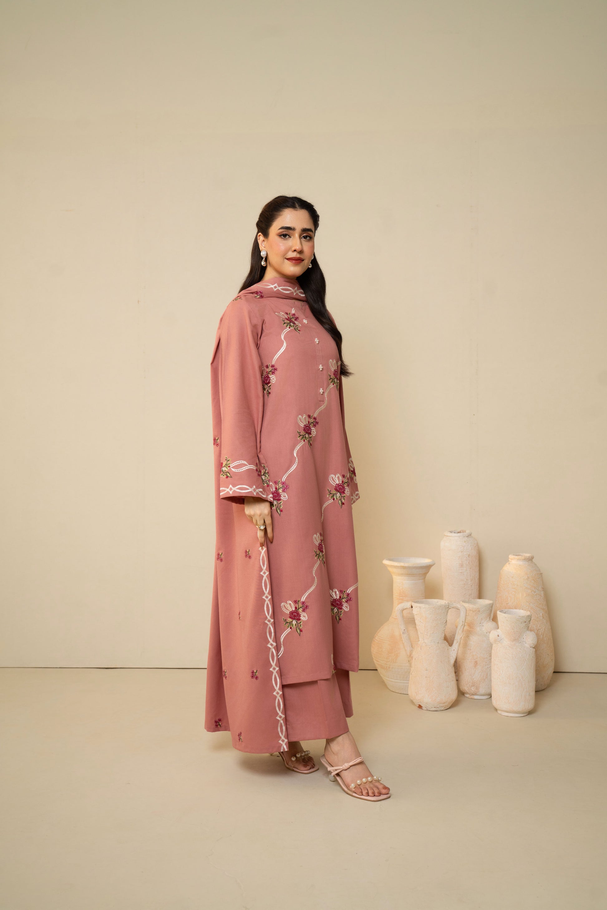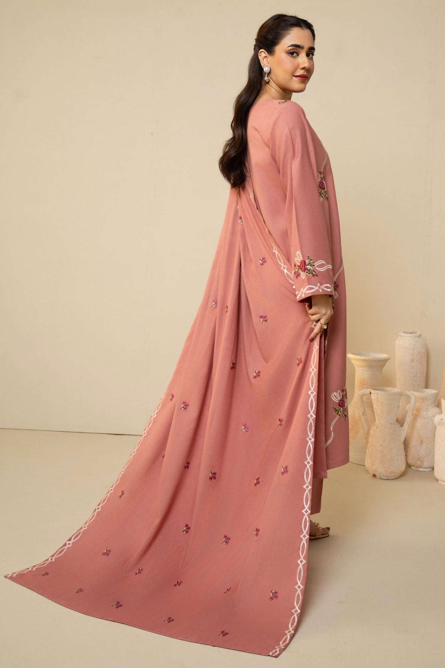 BATIK - 3PC DHANAK EMBROIDERED SHIRT WITH DHANAK EMBROIDERED SHAWL AND TROUSER - HZG2611