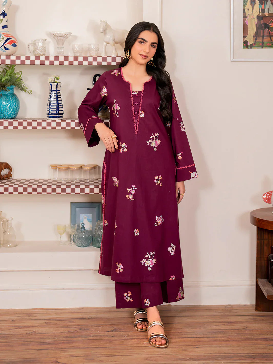 BATIK - 3PC DHANAK EMBROIDERED SHIRT WITH TWILL PRINTED SHAWL AND TROUSER - HZG1805