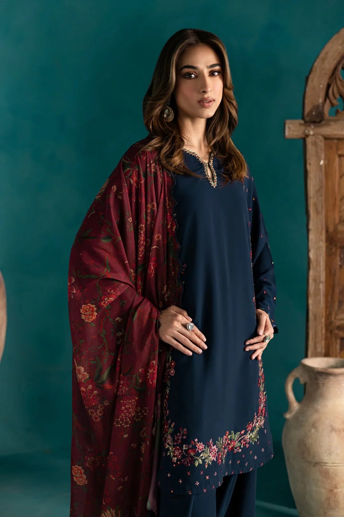 BATIK - 3PC LAWN EMBROIDERED SHIRT WITH CHIFFON PRINTED DUPATTA AND TROUSER - HZG2694