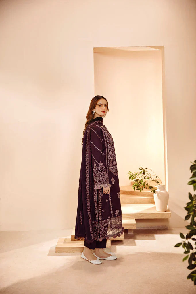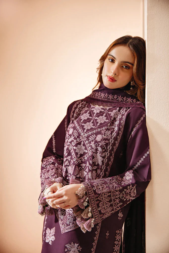 FLORENT - 3PC DHANAK EMBROIDERED SHIRT WITH DHANAK EMBROIDERED SHAWL AND TROUSER - HZG1934