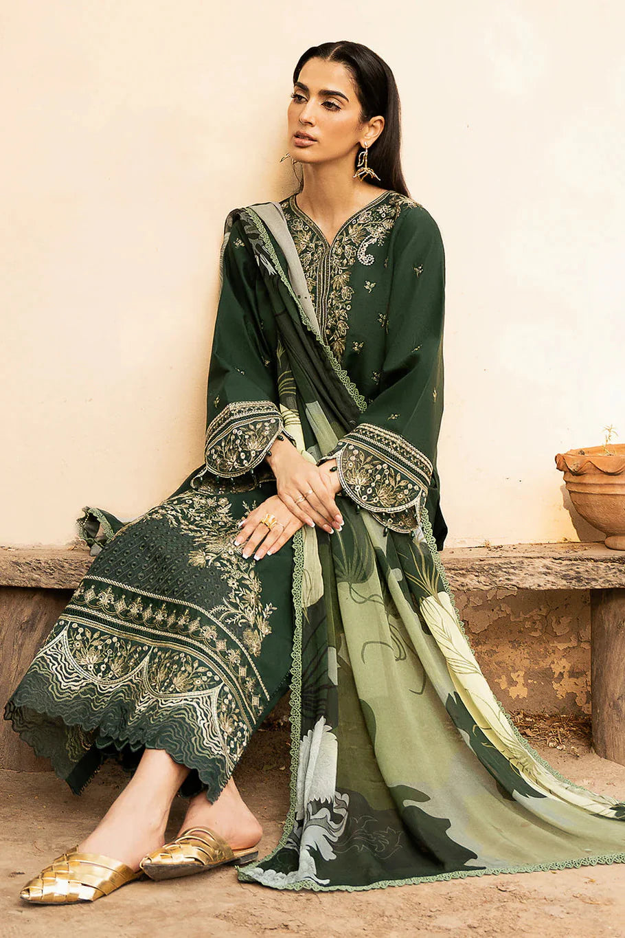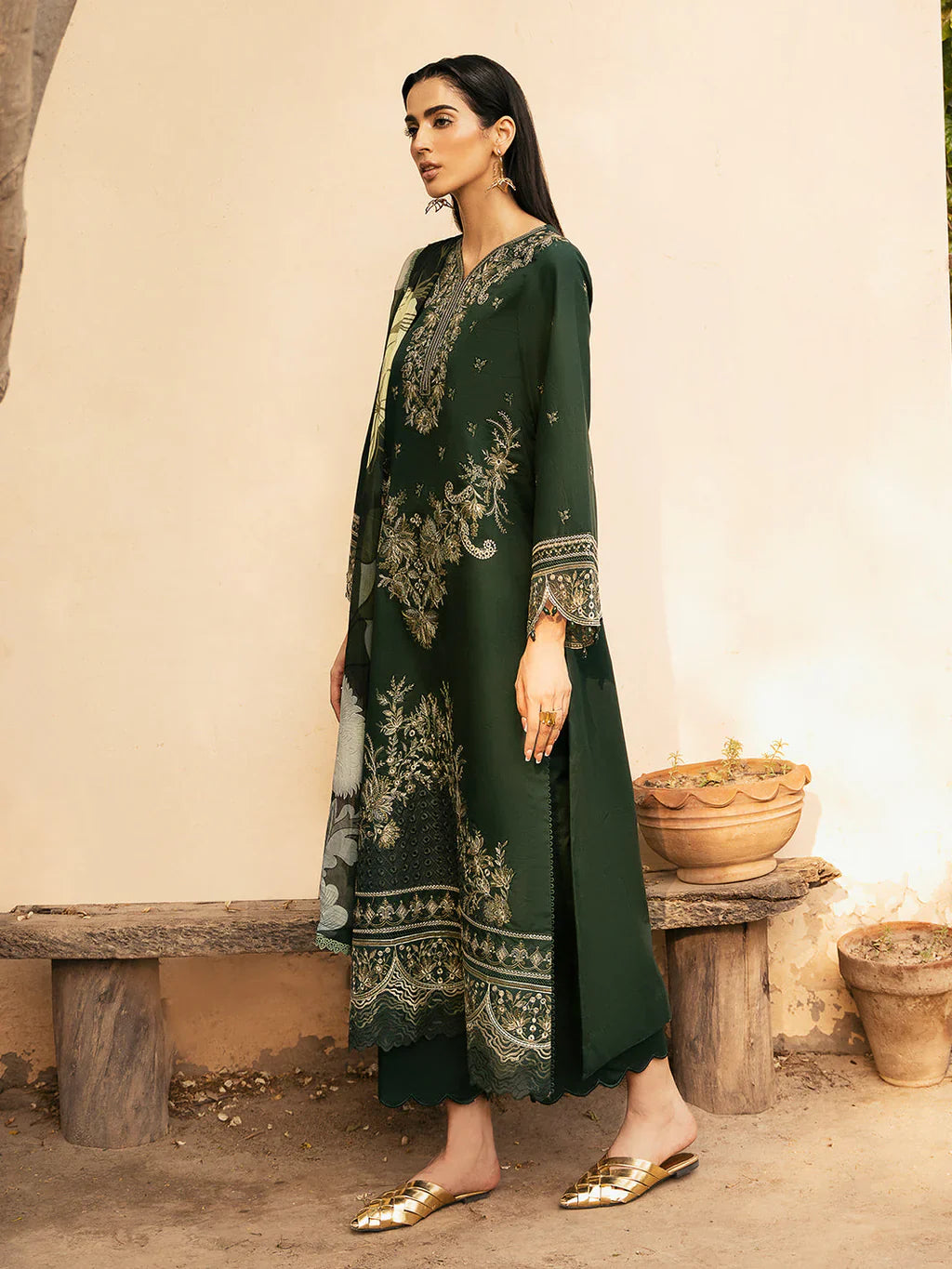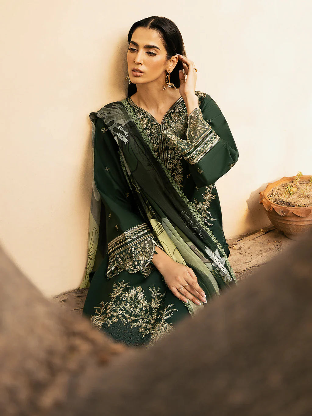 IZEL - 3PC LAWN EMBROIDERED SHIRT WITH CHIFFON PRINTED DUPATTA AND TROUSER - HZG2693