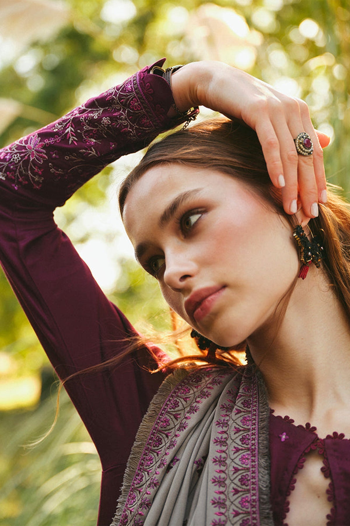 MARIA B - 3PC DHANAK EMBROIDERED SHIRT WITH DHANAK EMBROIDERED DUAPTTA AND TROUSER - HZG1383