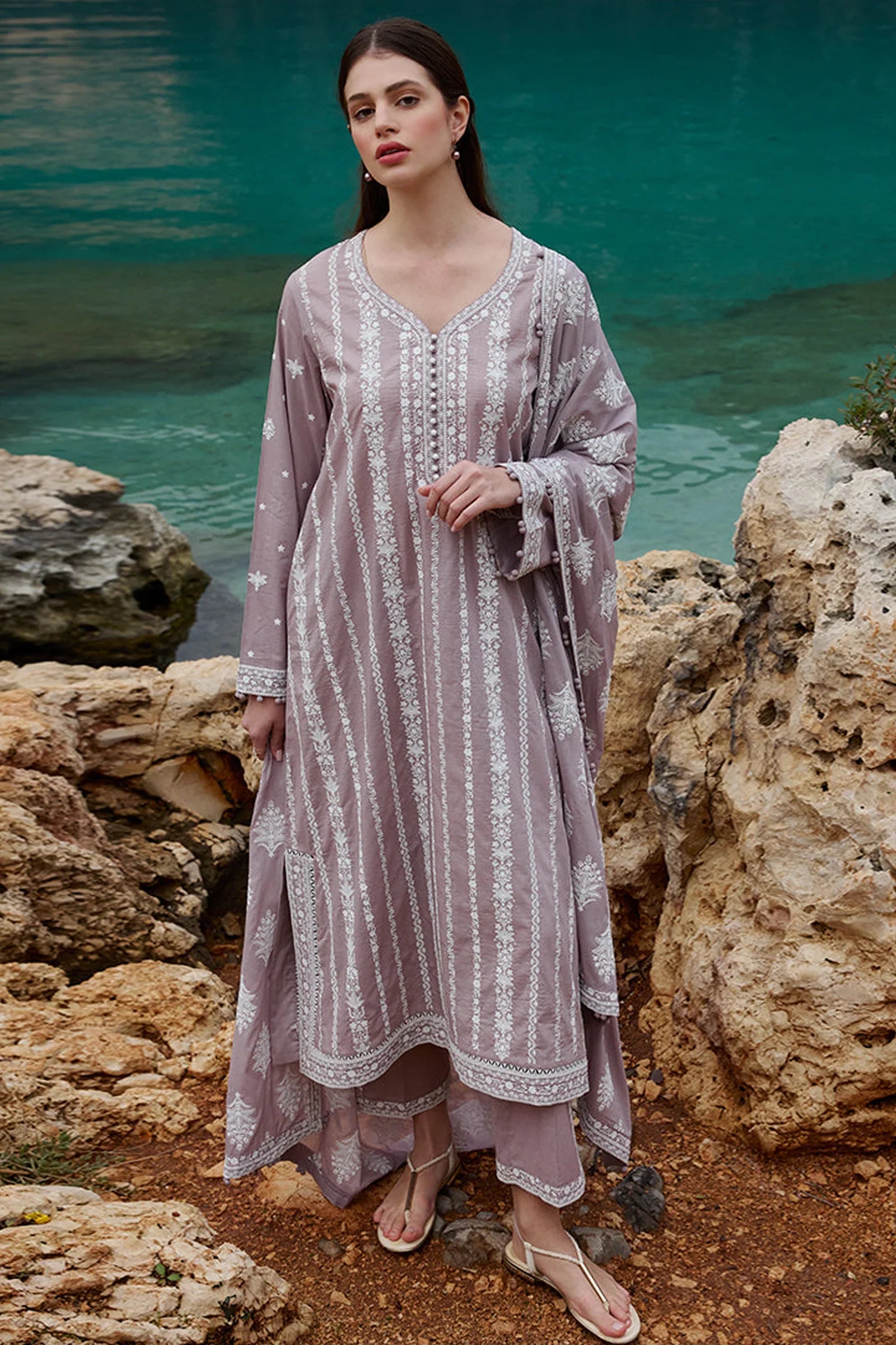 IMAGE - 3PC LAWN EMBROIDERED SHIRT WITH LAWN EMBROIDERED DUPATTA AND TROUSER - HZG2164