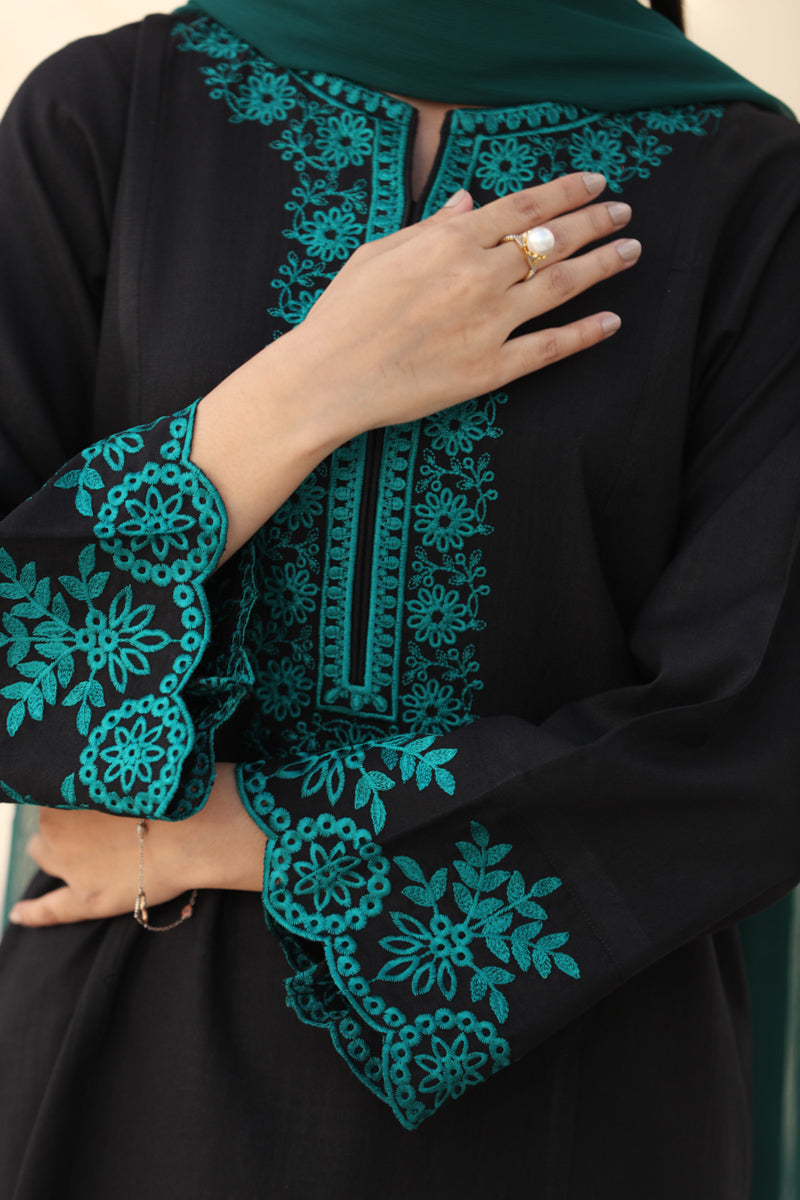 FAROZE - 2PC DHANAK EMBROIDERED SHIRT WITH DHANAK EMBROIDERED TROUSER - HZG1967