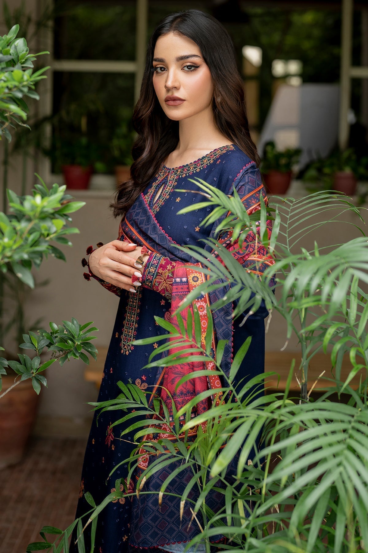 JAZMIN - 3PC KHADDAR EMBROIDERED SHIRT WITH TWILL PRINTED SHAWL AND TROUSER - HZG1828