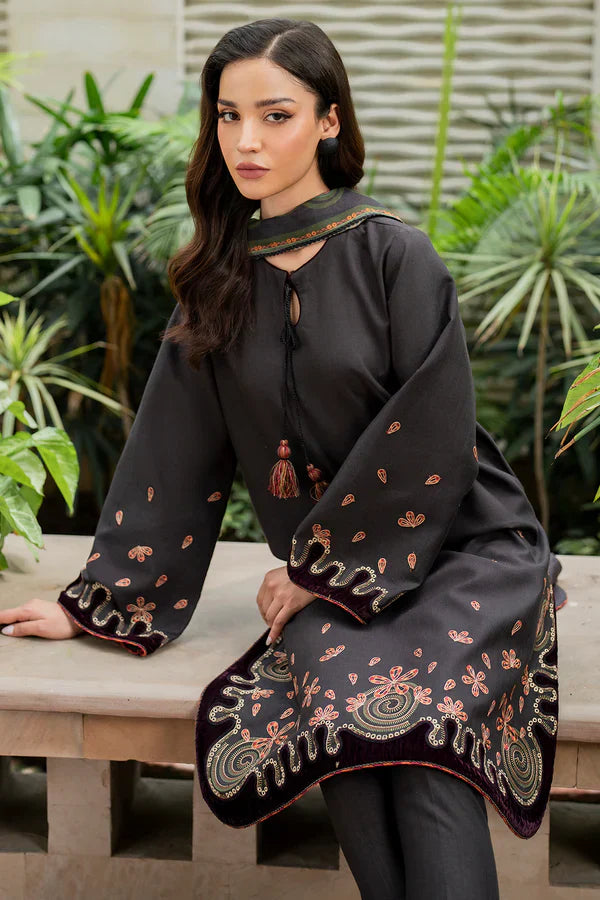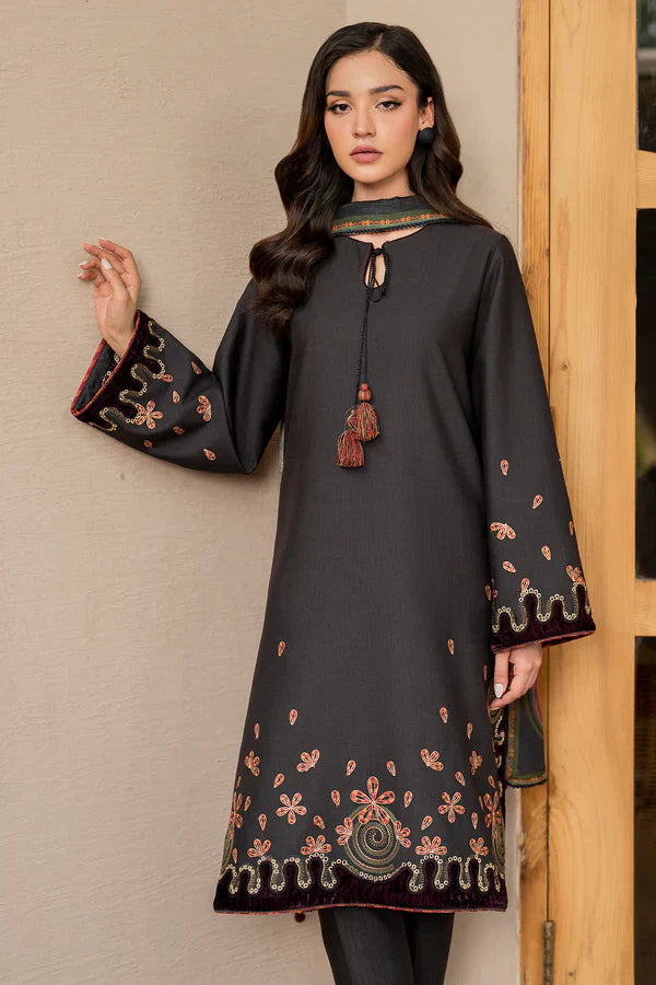 JAZMIN - 3PC KHADDAR EMBROIDERED SHIRT WITH TWILL PRINTED SHAWL AND TROUSER - HZG1912