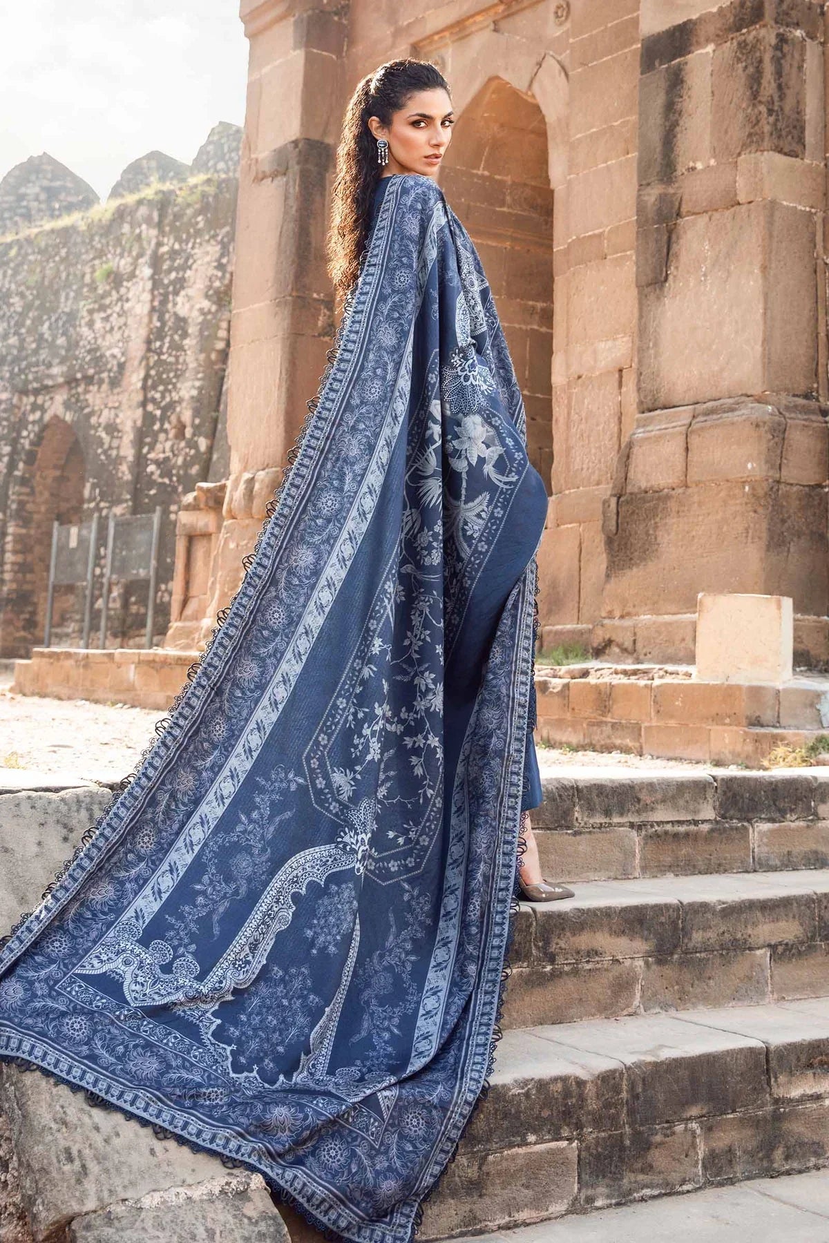 MARIA B - 3PC DHANAK EMBROIDERED SHIRT WITH TWILL PRINTED SHAWL AND TROUSER - HZG2059