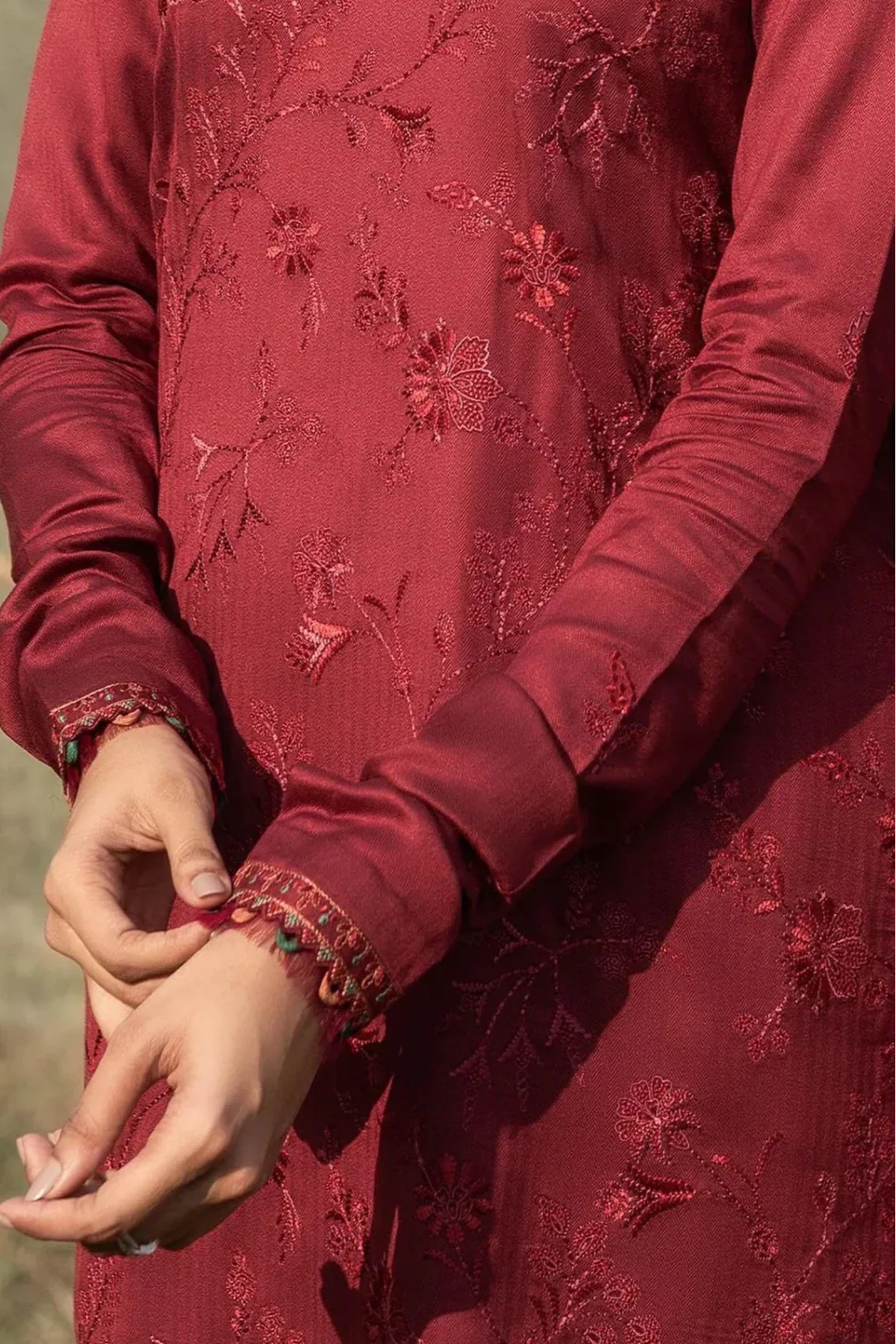 SERAN - 3PC DHANAK EMBROIDERED SHIRT WITH DHANAK EMBROIDERED SHAWL AND TROUSER - HZG2395