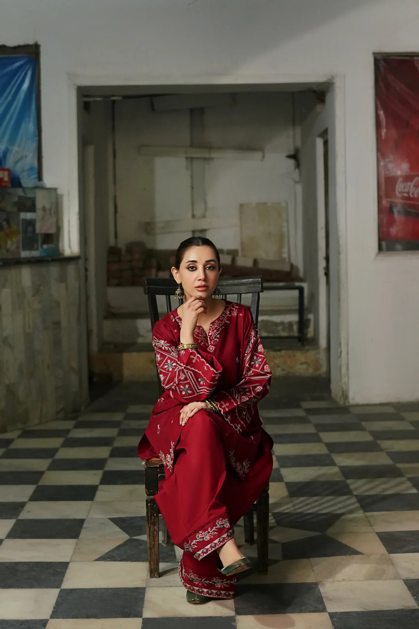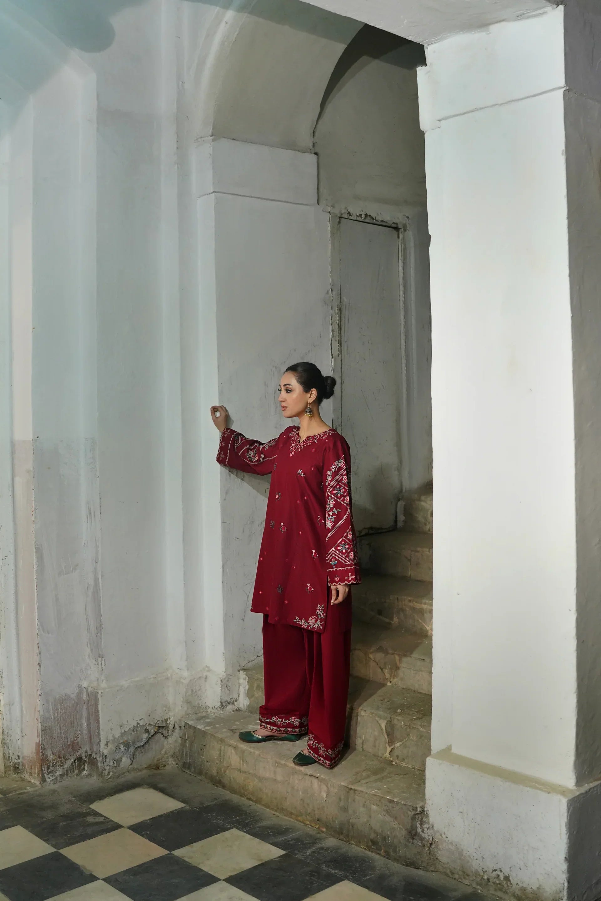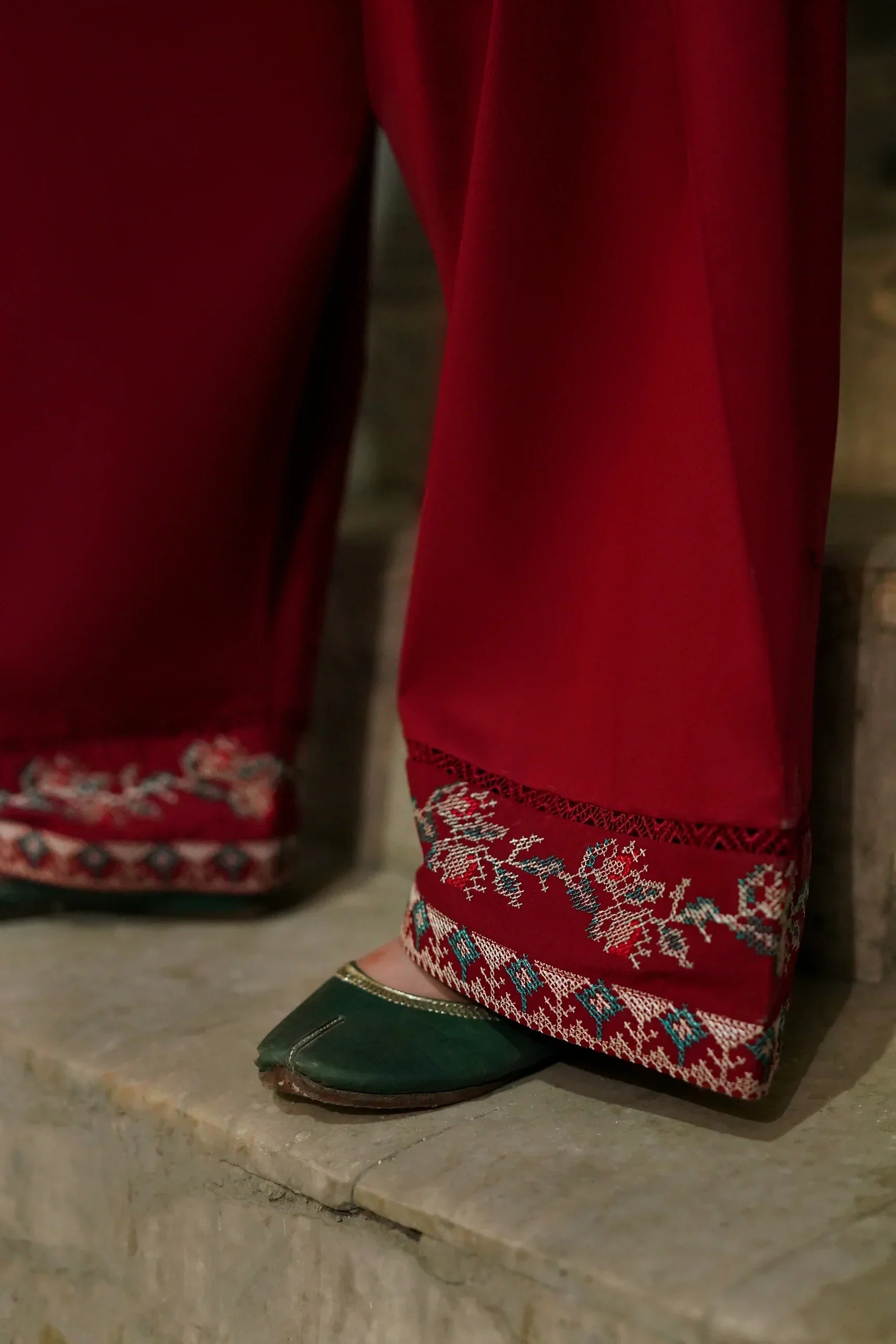 - Dhanak Cross-Stitch Threadwork Embroidered Trouser