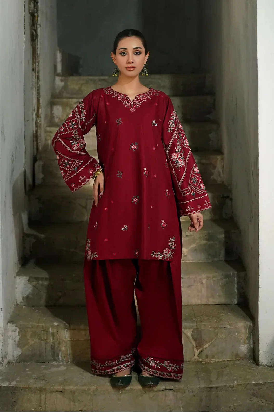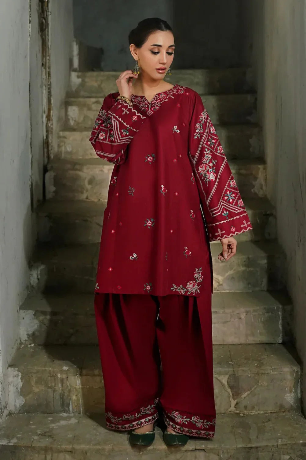 - Dhanak Cross-Stitch Threadwork Embroidered Sleeves