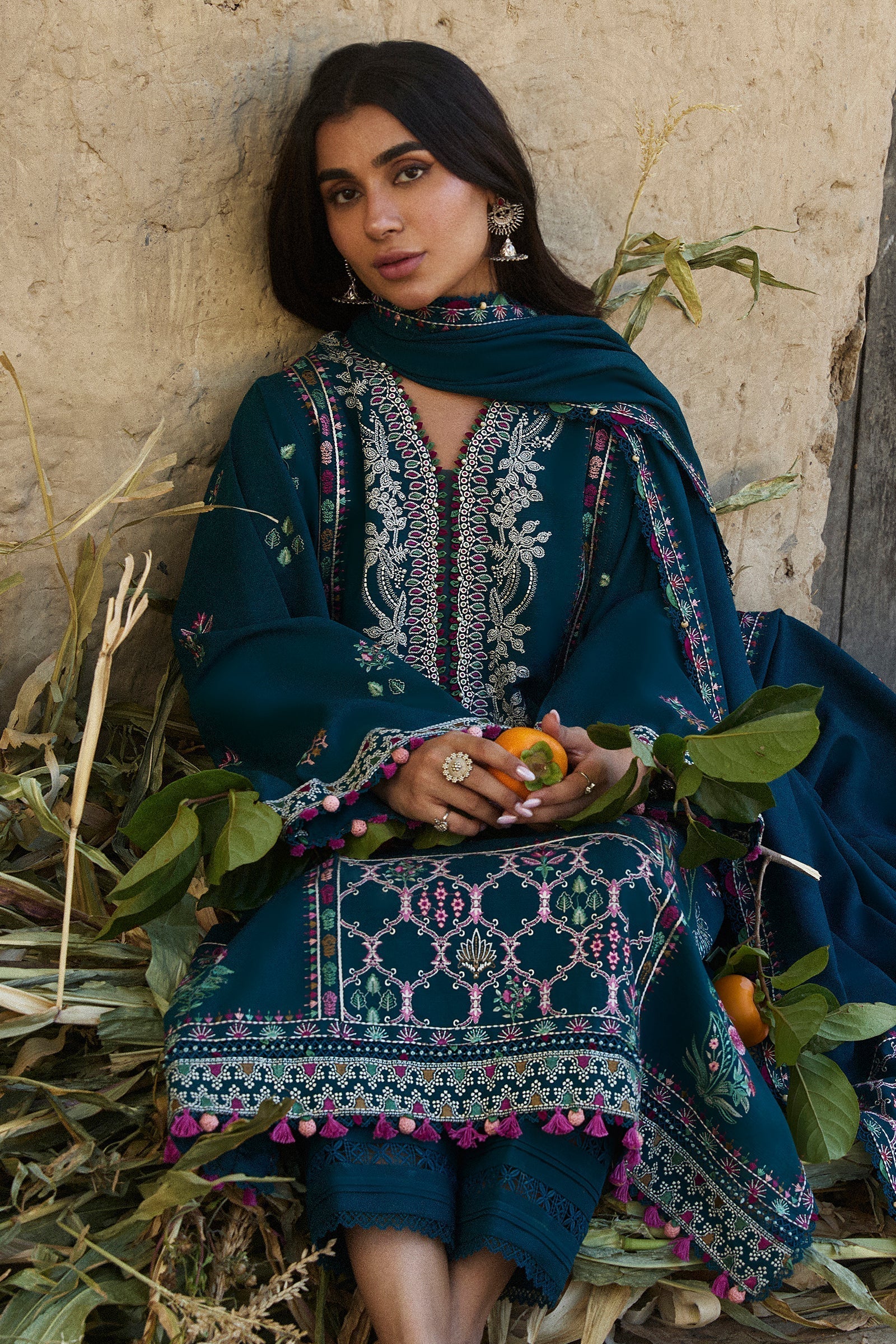 ZAHA - 3PC DHANAK EMBROIDERED SHIRT WITH DHANAK EMBROIDERED SHAWL AND TROUSER - HZG2316