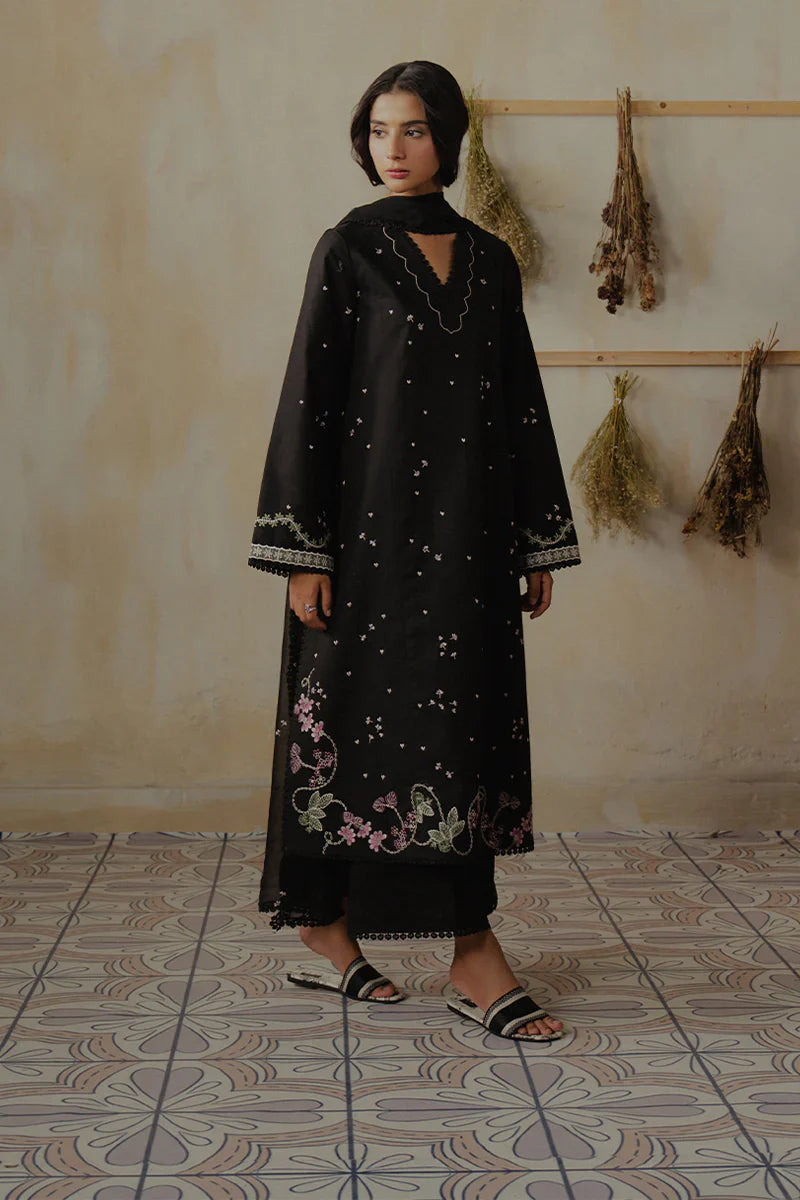 ZIVA - 3PC DHANAK EMBROIDERED SHIRT WITH CHIFFON DUPATTA AND TROUSER - HZG2610